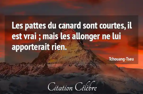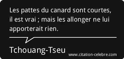 Les pattes du canard sont courtes, il est vrai ; mais les allonger ne lui apporterait rien.