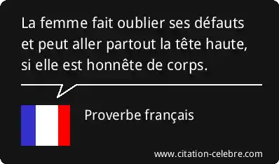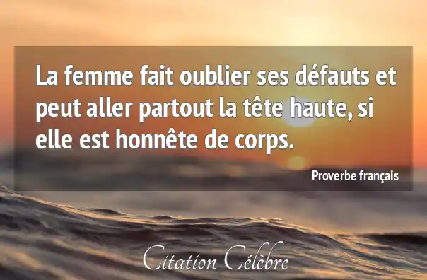 La femme fait oublier ses défauts et peut aller partout la tête haute, si elle est honnête de corps.