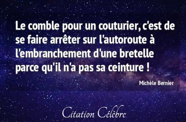 Le comble pour un couturier, c'est de se faire arrêter sur l'autoroute à l'embranchement d'une bretelle parce qu'il n'a pas sa ceinture !