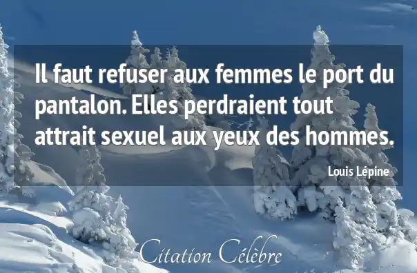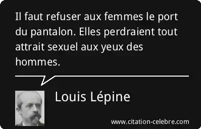 Il faut refuser aux femmes le port du pantalon. Elles perdraient tout attrait sexuel aux yeux des hommes.