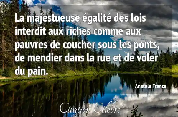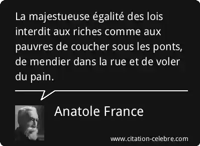 La majestueuse égalité des lois interdit aux riches comme aux pauvres de coucher sous les ponts, de mendier dans la rue et de voler du pain.