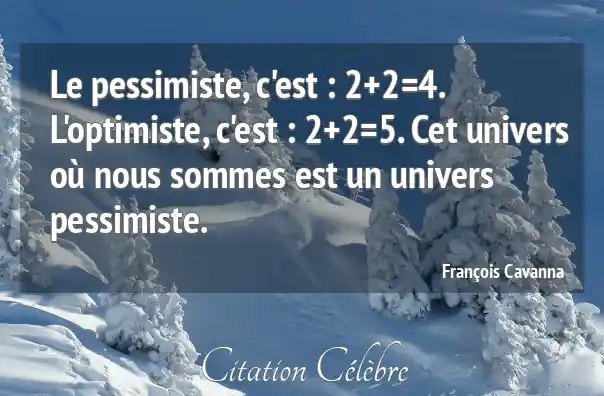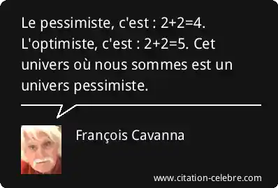 Le pessimiste, c'est : 2+2=4. L'optimiste, c'est : 2+2=5. Cet univers où nous sommes est un univers pessimiste.