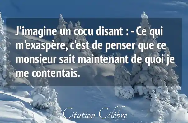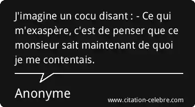J'imagine un cocu disant : - Ce qui m'exaspère, c'est de penser que ce monsieur sait maintenant de quoi je me contentais.
