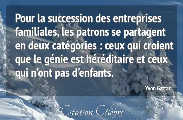 Pour la succession des entreprises familiales, les patrons se partagent en deux catégories : ceux qui croient que le génie est héréditaire et ceux qui n'ont pas d'enfants.