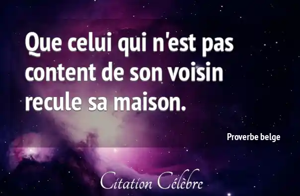 Que celui qui n'est pas content de son voisin recule sa maison.