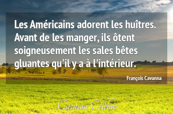 Les Américains adorent les huîtres. Avant de les manger, ils ôtent soigneusement les sales bêtes gluantes qu'il y a à l'intérieur.
