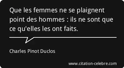 Que les femmes ne se plaignent point des hommes : ils ne sont que ce qu'elles les ont faits.