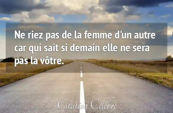 Ne riez pas de la femme d'un autre car qui sait si demain elle ne sera pas la vôtre.