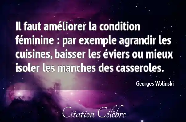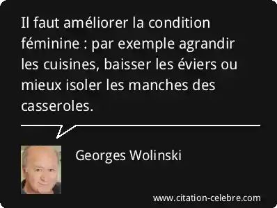 Il faut améliorer la condition féminine : par exemple agrandir les cuisines, baisser les éviers ou mieux isoler les manches des casseroles.