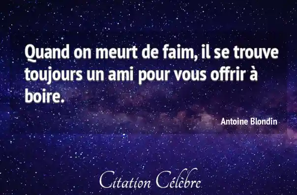 Quand on meurt de faim, il se trouve toujours un ami pour vous offrir à boire.