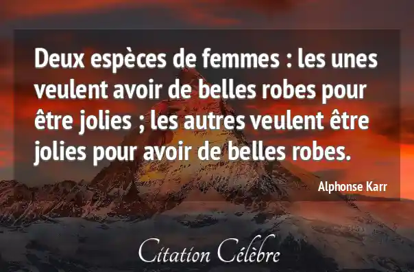 Deux espèces de femmes : les unes veulent avoir de belles robes pour être jolies ; les autres veulent être jolies pour avoir de belles robes.