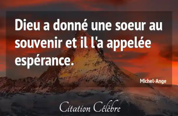 Dieu a donné une soeur au souvenir et il l'a appelée espérance.
