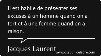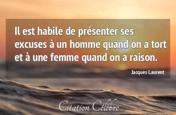 Il est habile de présenter ses excuses à un homme quand on a tort et à une femme quand on a raison.