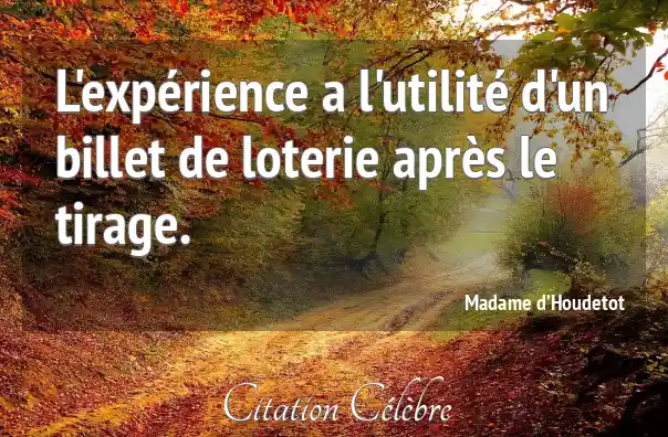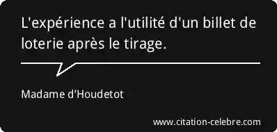 Citation Madame d’Houdetot experience : L'expérience a l'utilité d'un billet de loterie après le tirage....