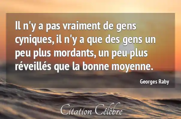 Il n'y a pas vraiment de gens cyniques, il n'y a que des gens un peu plus mordants, un peu plus réveillés que la bonne moyenne.