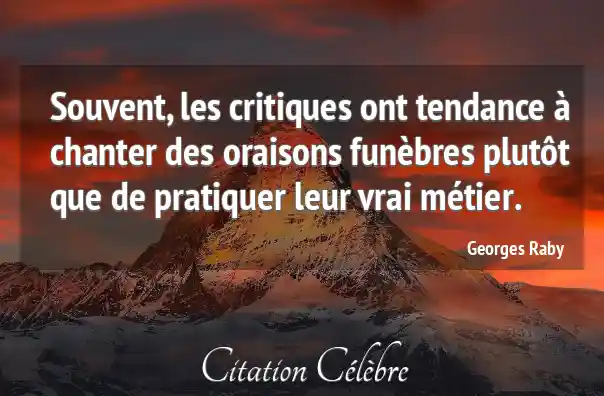 Souvent, les critiques ont tendance à chanter des oraisons funèbres plutôt que de pratiquer leur vrai métier.