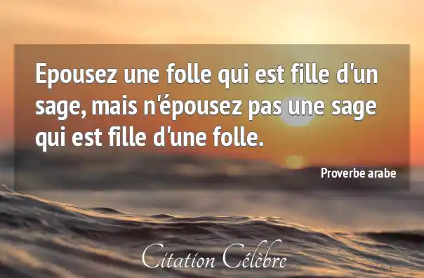 Epousez une folle qui est fille d'un sage, mais n'épousez pas une sage qui est fille d'une folle.