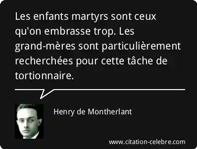 Les enfants martyrs sont ceux qu'on embrasse trop. Les grand-mères sont particulièrement recherchées pour cette tâche de tortionnaire.