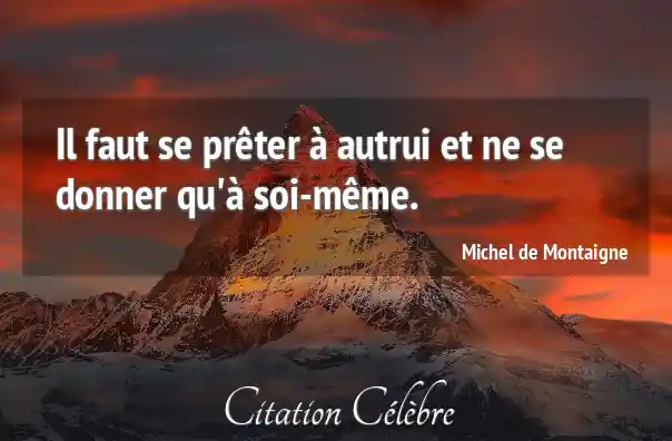 Il faut se prêter à autrui et ne se donner qu'à soi-même.