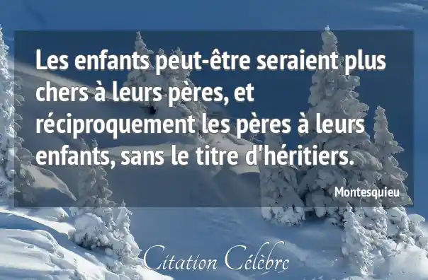 Les enfants peut-être seraient plus chers à leurs pères, et réciproquement les pères à leurs enfants, sans le titre d'héritiers.