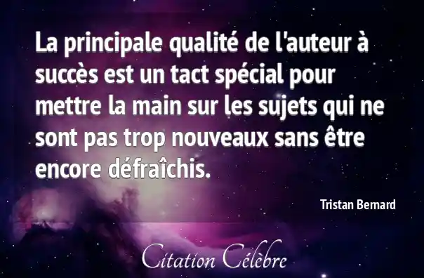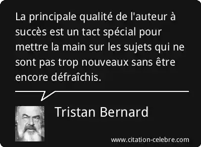 La principale qualité de l'auteur à succès est un tact spécial pour mettre la main sur les sujets qui ne sont pas trop nouveaux sans être encore défraîchis.