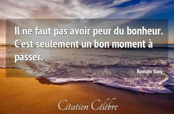 Il ne faut pas avoir peur du bonheur. C'est seulement un bon moment à passer.