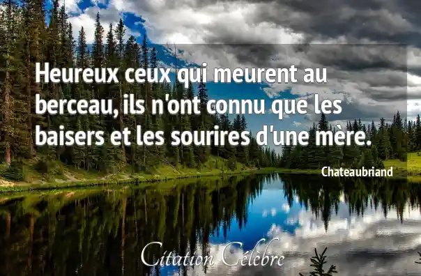 Heureux ceux qui meurent au berceau, ils n'ont connu que les baisers et les sourires d'une mère.