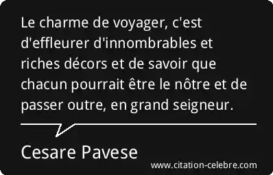 Le charme de voyager, c'est d'effleurer d'innombrables et riches décors et de savoir que chacun pourrait être le nôtre et de passer outre, en grand seigneur.