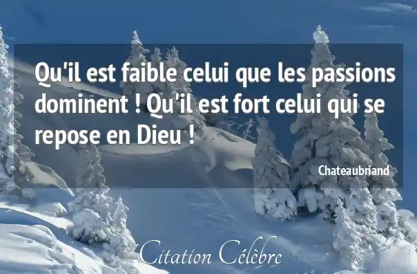 Qu'il est faible celui que les passions dominent ! Qu'il est fort celui qui se repose en Dieu !