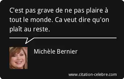 C'est pas grave de ne pas plaire à tout le monde. Ca veut dire qu'on plaît au reste.