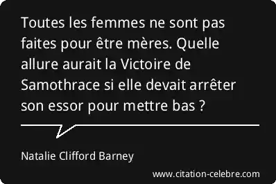 Toutes les femmes ne sont pas faites pour être mères. Quelle allure aurait la Victoire de Samothrace si elle devait arrêter son essor pour mettre bas ?