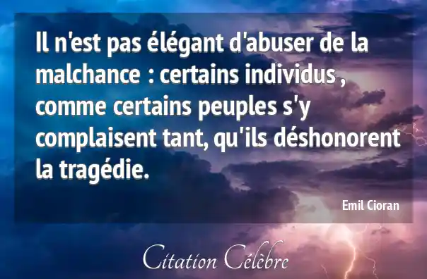 Il n'est pas élégant d'abuser de la malchance : certains individus , comme certains peuples s'y complaisent tant, qu'ils déshonorent la tragédie.