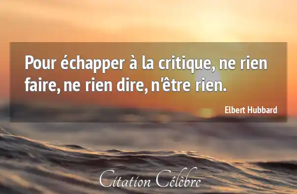 Pour échapper à la critique, ne rien faire, ne rien dire, n'être rien.