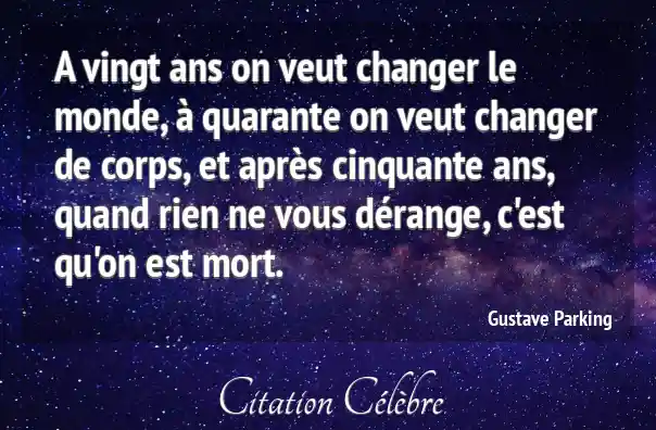 A vingt ans on veut changer le monde, à quarante on veut changer de corps, et après cinquante ans, quand rien ne vous dérange, c'est qu'on est mort.