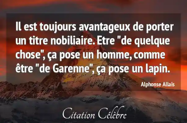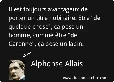 Il est toujours avantageux de porter un titre nobiliaire. Etre "de quelque chose", ça pose un homme, comme être "de Garenne", ça pose un lapin.