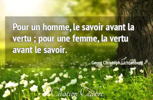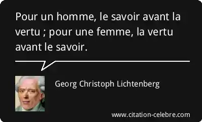 Pour un homme, le savoir avant la vertu ; pour une femme, la vertu avant le savoir.