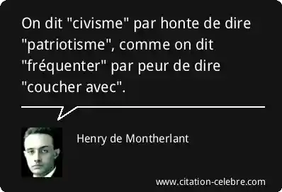 On dit "civisme" par honte de dire "patriotisme", comme on dit "fréquenter" par peur de dire "coucher avec".