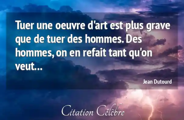 Tuer une oeuvre d'art est plus grave que de tuer des hommes. Des hommes, on en refait tant qu'on veut...