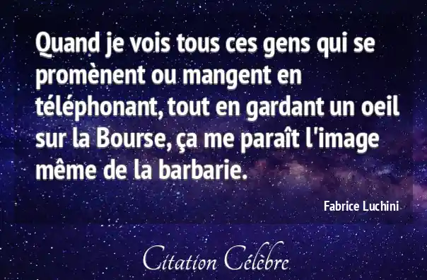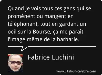 Quand je vois tous ces gens qui se promènent ou mangent en téléphonant, tout en gardant un oeil sur la Bourse, ça me paraît l'image même de la barbarie.