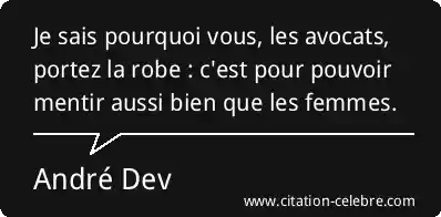 Je sais pourquoi vous, les avocats, portez la robe : c'est pour pouvoir mentir aussi bien que les femmes.