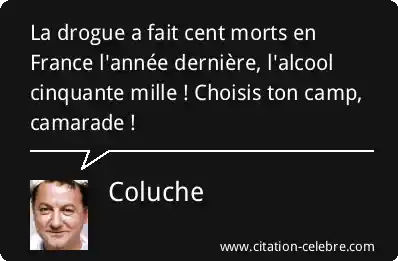 La drogue a fait cent morts en France l'année dernière, l'alcool cinquante mille ! Choisis ton camp, camarade !