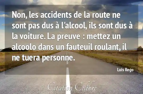 Non, les accidents de la route ne sont pas dus à l'alcool, ils sont dus à la voiture. La preuve : mettez un alcoolo dans un fauteuil roulant, il ne tuera personne.