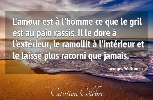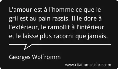 L'amour est à l'homme ce que le gril est au pain rassis. Il le dore à l'extérieur, le ramollit à l'intérieur et le laisse plus racorni que jamais.