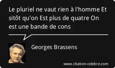 Le pluriel ne vaut rien à l'homme Et sitôt qu'on Est plus de quatre On est une bande de cons