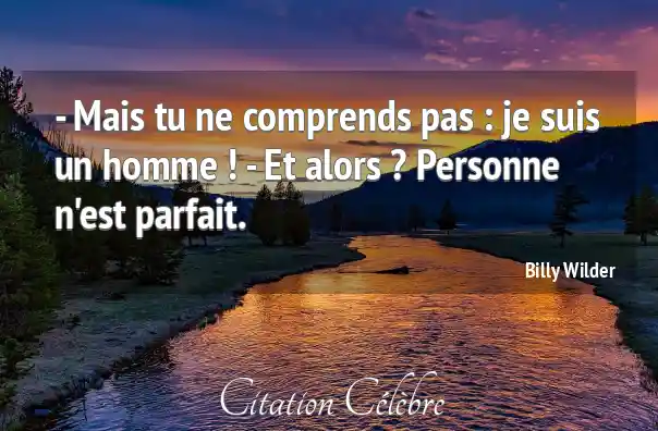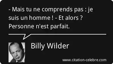 - Mais tu ne comprends pas : je suis un homme ! - Et alors ? Personne n'est parfait.