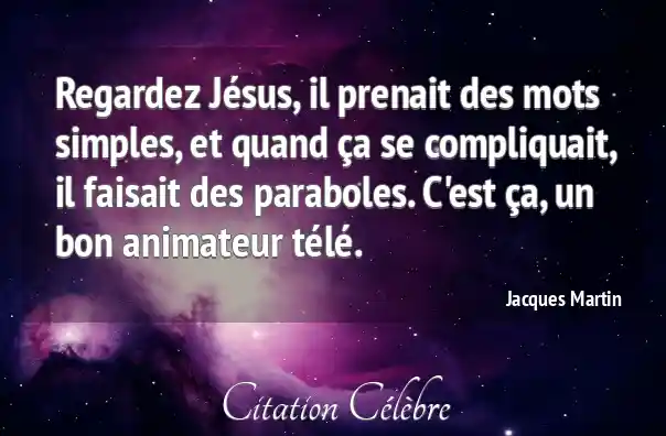 Regardez Jésus, il prenait des mots simples, et quand ça se compliquait, il faisait des paraboles. C'est ça, un bon animateur télé.