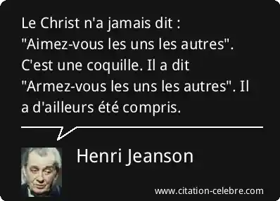 Le Christ n'a jamais dit : "Aimez-vous les uns les autres". C'est une coquille. Il a dit "Armez-vous les uns les autres". Il a d'ailleurs été compris.