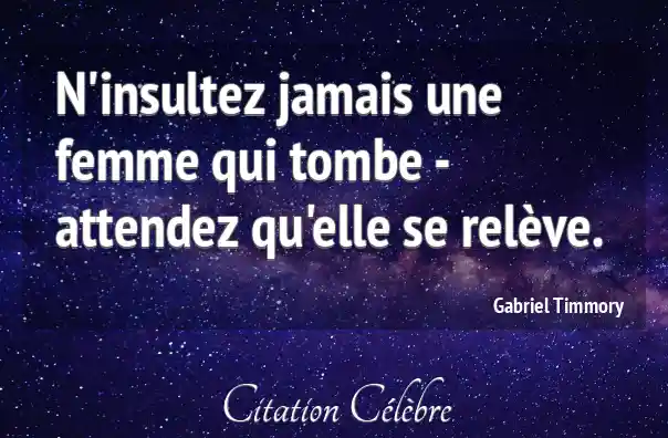 N'insultez jamais une femme qui tombe - attendez qu'elle se relève.
