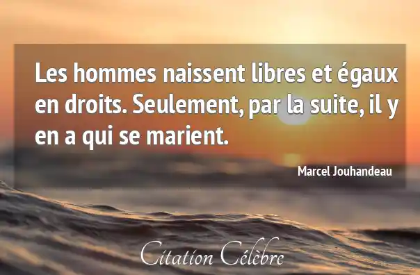 Les hommes naissent libres et égaux en droits. Seulement, par la suite, il y en a qui se marient.