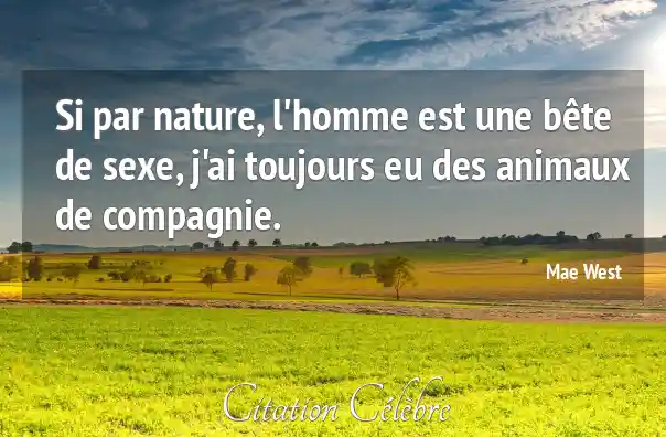Si par nature, l'homme est une bête de sexe, j'ai toujours eu des animaux de compagnie.